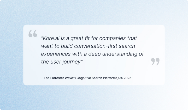 Get the complete Forrester Wave™: Cognitive Search Platforms, Q4 2025 report and see why Kore.ai was recognized as a Leader. If you’re exploring the future of enterprise search, we’re ready for the conversation.
