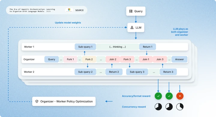 Microsoft’s AsyncThink offers a clear example of this evolution. In their research, an organizer agent was designed to dynamically fork sub-tasks to parallel worker agents, each specialized in solving a portion of the problem. By coordinating these agents asynchronously, AsyncThink reduced latency by 28 percent while simultaneously improving reasoning accuracy. The takeaway was profound: distributed intelligence, when structured well, outperforms centralized intelligence every time.
