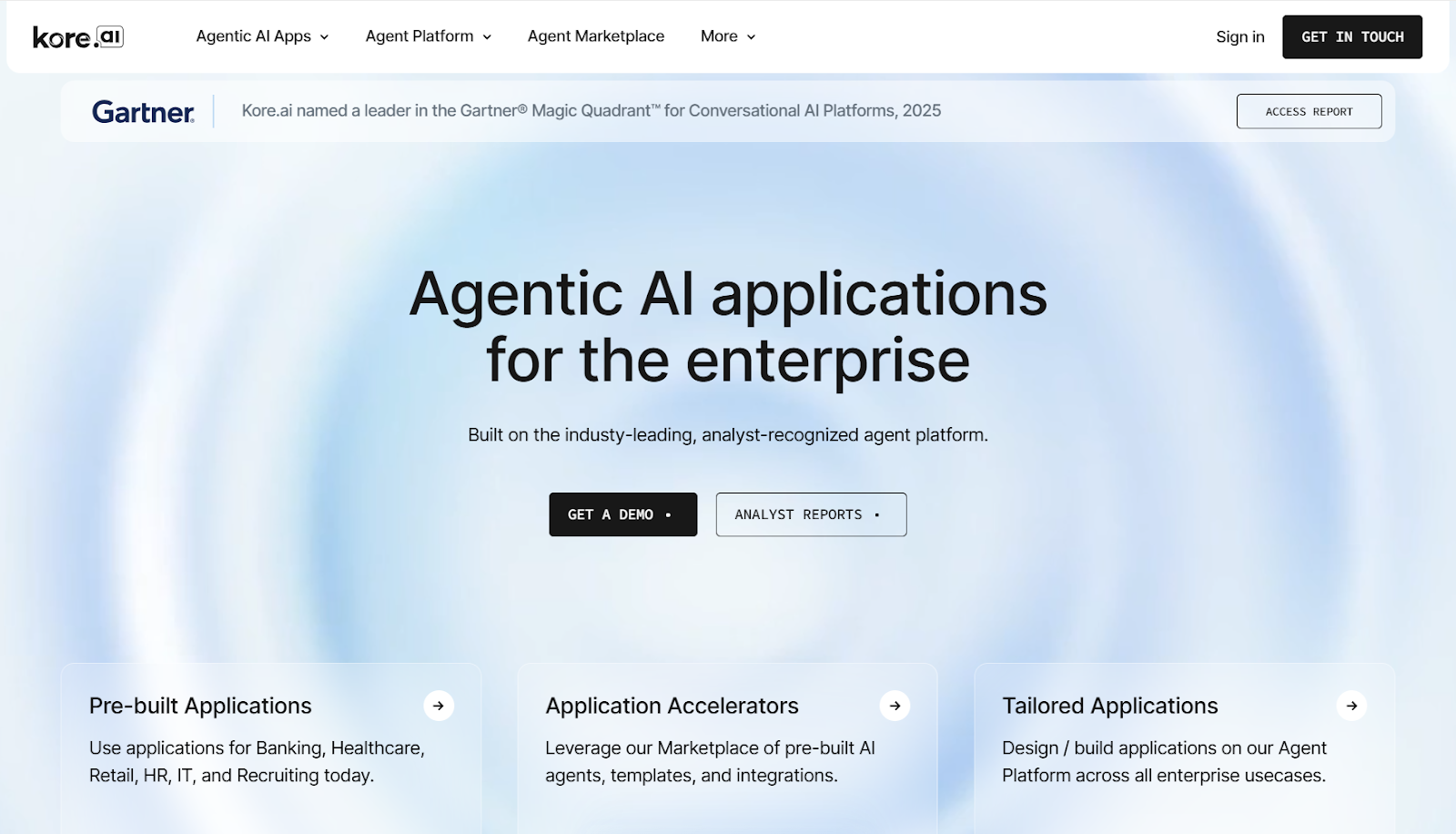 1. Kore.ai: Ideal for enterprises operationalizing AI agents at scale across CX, EX, and business processes