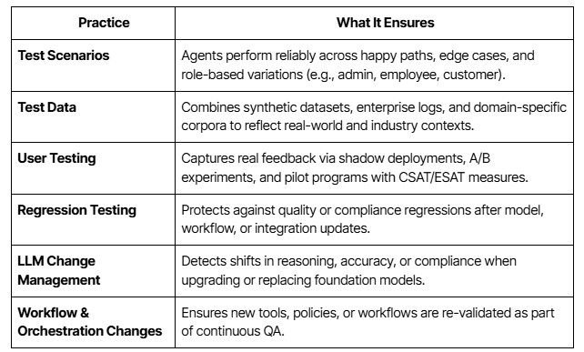 Testing Practices for Enterprise AI Agents