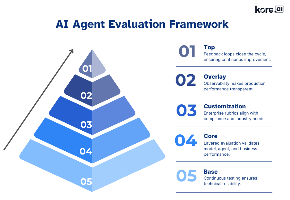 Together, these five pillars transform AI agent evaluation from ad-hoc testing into a disciplined enterprise framework, ensuring agents are reliable, compliant, and aligned with business outcomes at scale.