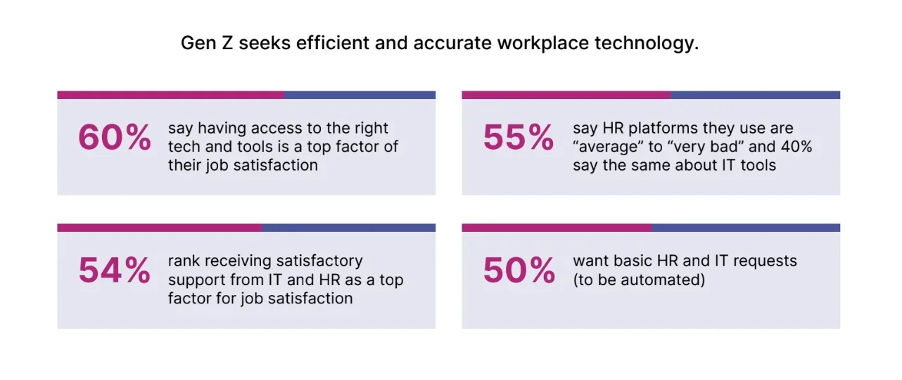 The message to organizations is clear: keeping up with these demands is imperative, as failure to provide the right technology may lead to the departure of the future workforce, emphasizing the essential role of AI for employee engagement and AI for process automation.