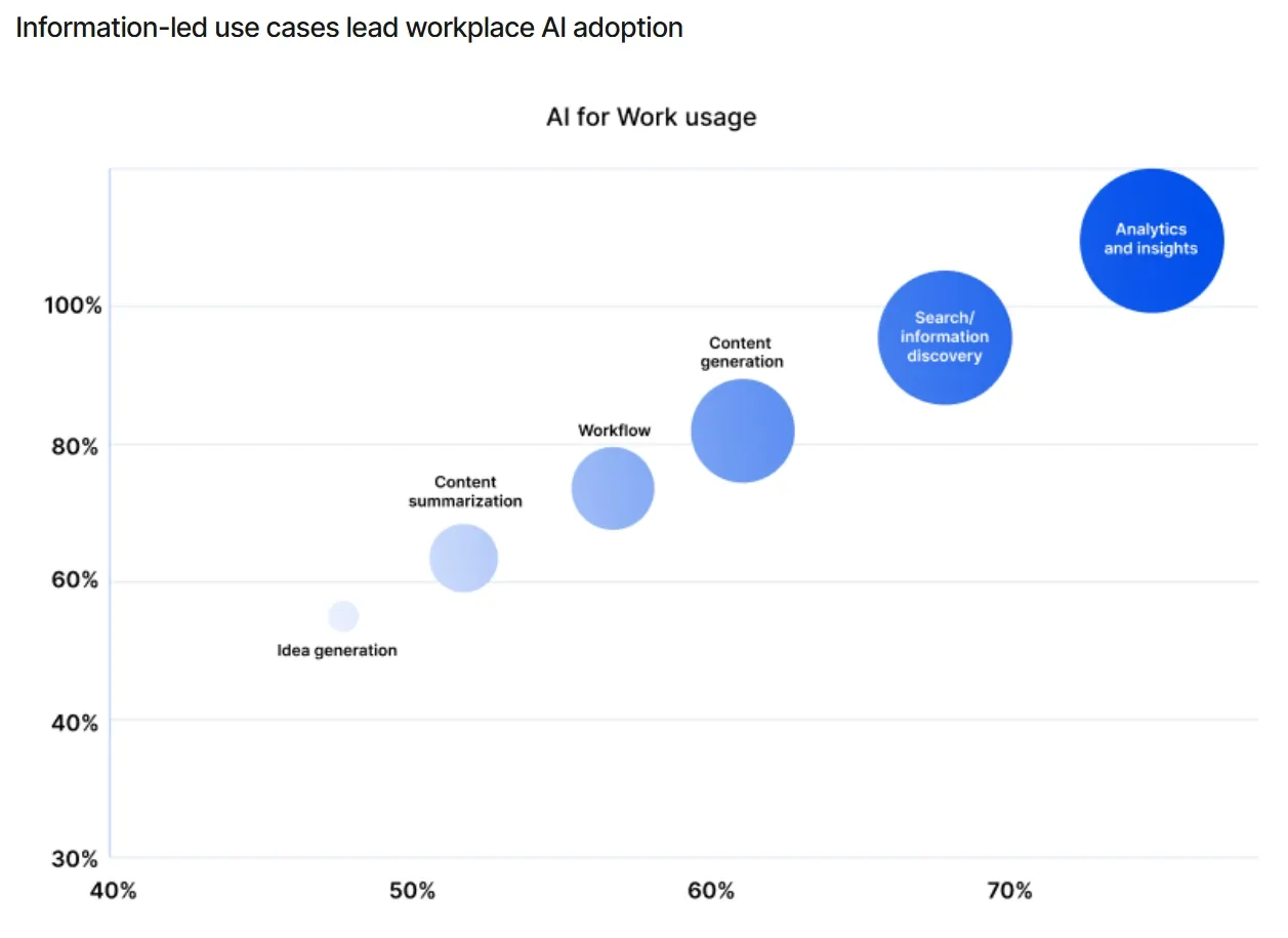 61% of organizations use AI to generate content quickly, from drafting emails and proposals to structuring reports and presentations.