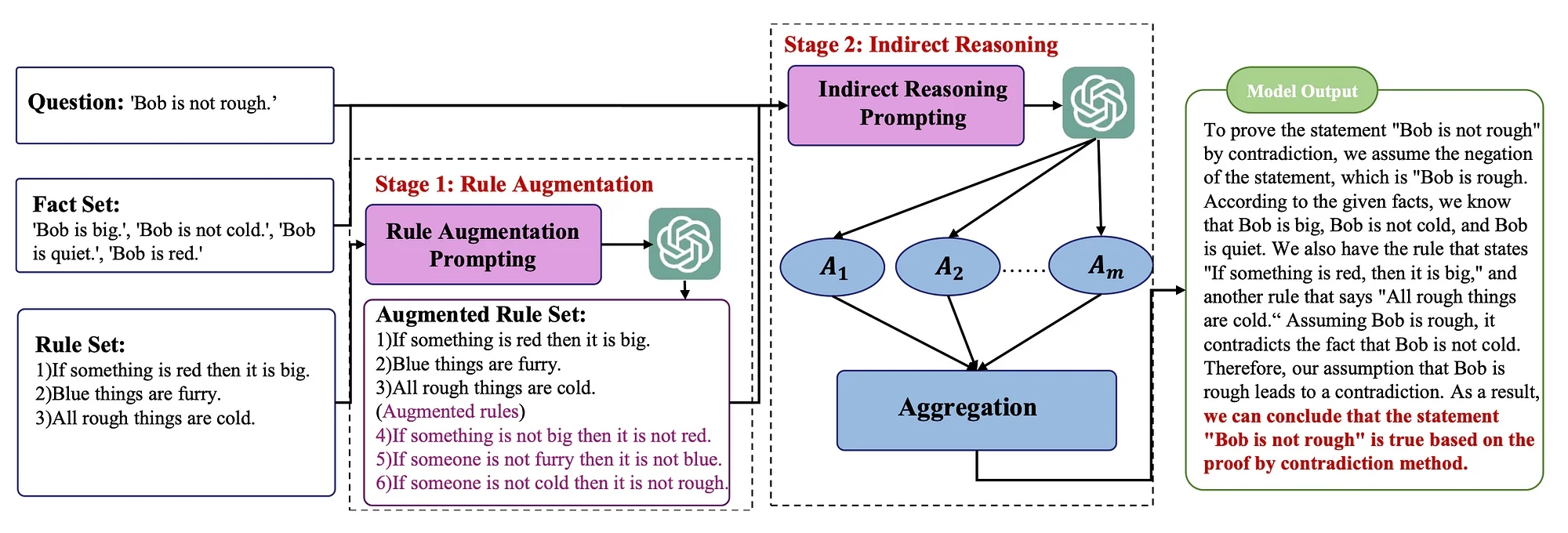 A fairly recent study addressed the need to enhance the reasoning capabilities of Large Language Models (LLMs) beyond Direct Reasoning (DR) frameworks like Chain-of-Thought and Self-Consistency, which may struggle with real-world tasks requiring Indirect Reasoning (IR).