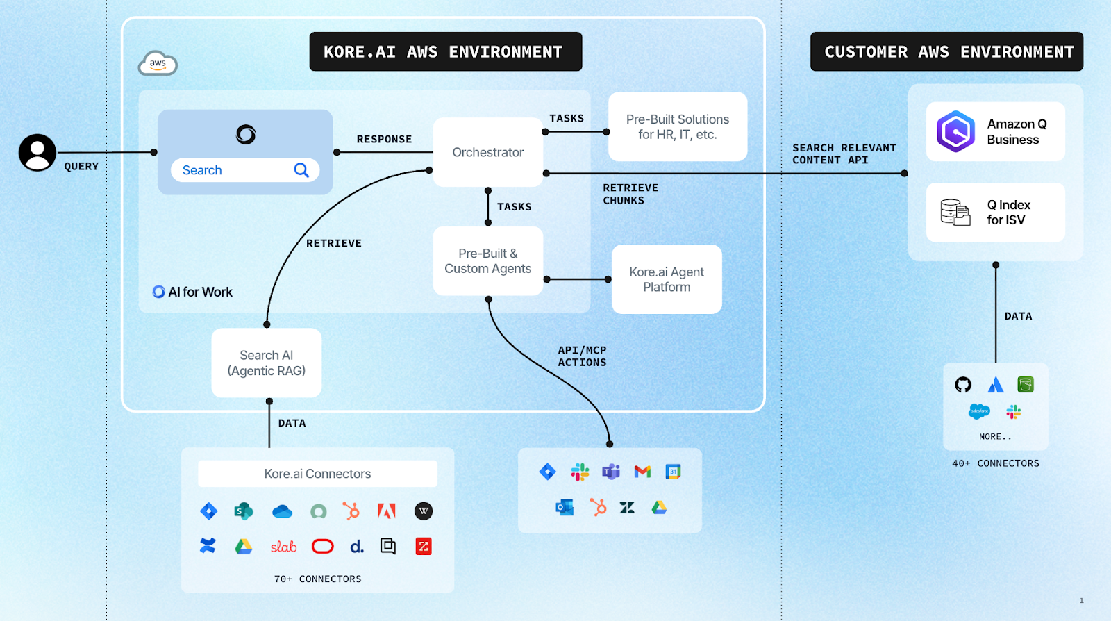 While the advent of AI offers a promising path forward, enterprises still struggle with challenges like governance, security, and the complexity of integrating across diverse applications. Kore.ai’s AI for Work, an employee productivity platform, addresses exactly these gaps. It not only helps in automating repetitive tasks, or finding relevant documents or getting answers to employees' questions, it also allows them to build new AI agents to solve their problems on their own. And now, in addition to its own search and answer solution, AI for Work also integrates with Amazon Q Index to increase data coverage and build on AWS native security. The integration allows users to get answers from their Q Index data and also build agentic experiences on top of the results.