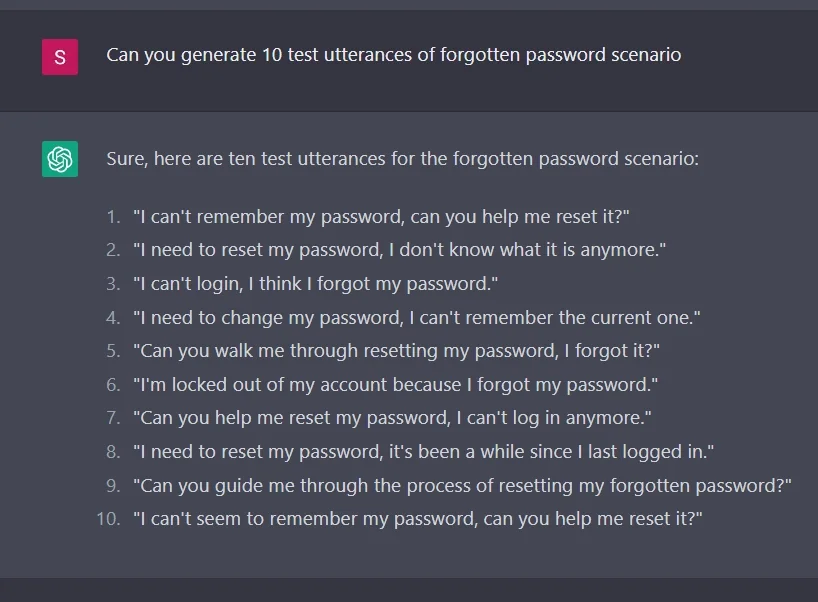 With ChatGPT by your side, gathering test utterances becomes an efficient and dynamic process. It's time to embrace this AI-powered testing ally and explore the endless possibilities it offers.