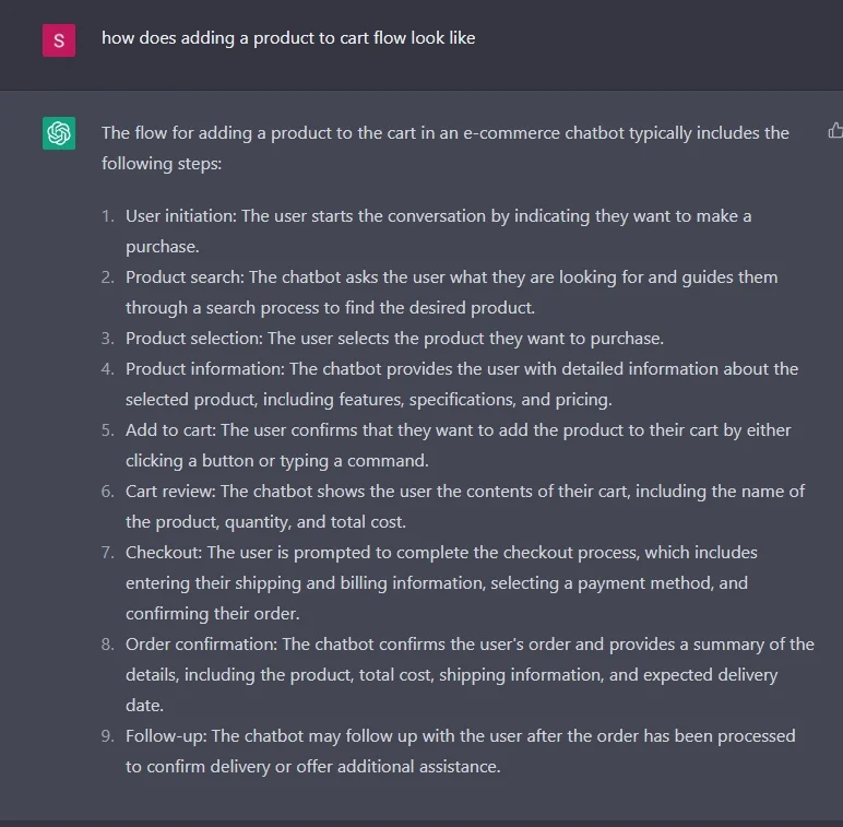 Your user has found the perfect product and wants to make a purchase. ChatGPT can list out the precise steps—step by step—that your user will go through, from the initial selection to finalizing the purchase.