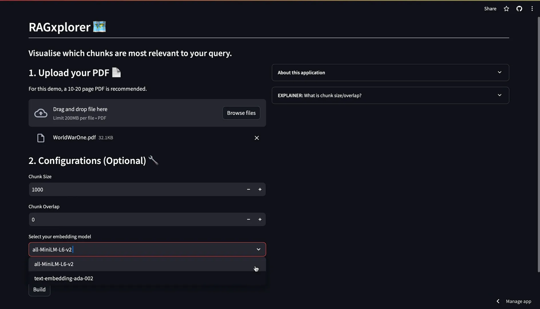 RAGxplorer empowers users to upload documents, transforming them into segmented formats (chunks) compatible with RAG applications.